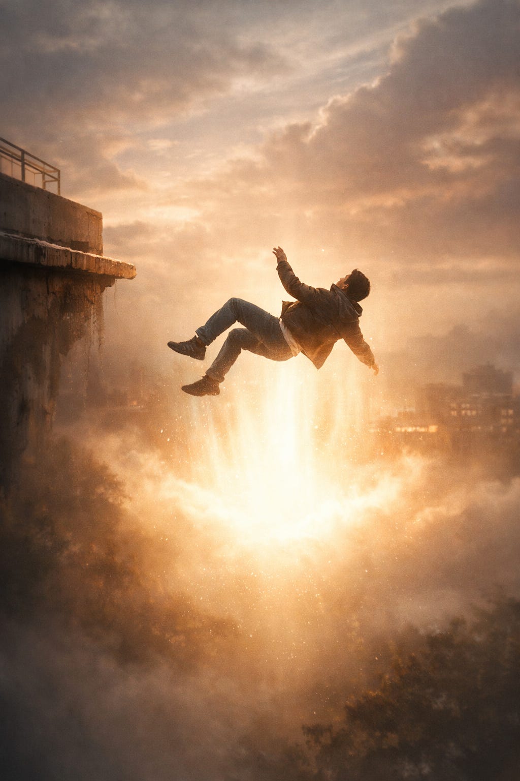 Grace is like in those movies where someone is running from a killer or standing on the edge of a roof… and they fall. You think they’re dead. The whole scene makes it look like it’s over. Then they zoom out and you realize they landed in a trash can or something that caught their fall.